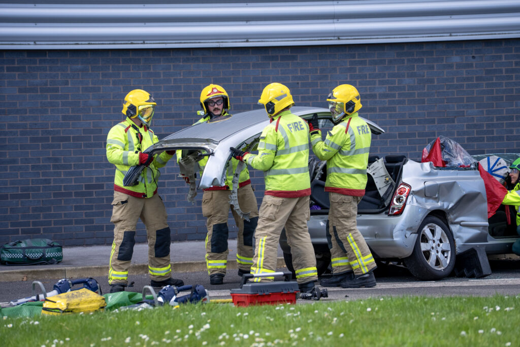 Attendees observed a staged collision involving multiple road users. Emergency services responded exactly as they would in a real incident, providing a rare insight into the complexity, urgency and precision of postâcollision work. The live scenario included:
